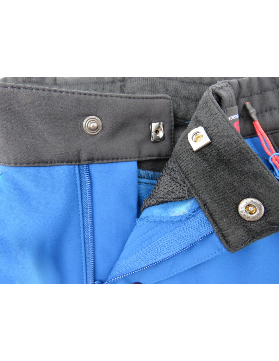 Pantalone in tessuto soft shell a tre strati che assicura protezione dal vento e dall'acqua. La particolare struttura del tessuto rende il capo traspirante perché' facilita l'espulsione dell’umidità in eccesso. Nello stesso tempo lo strato interno in morbido pile lo rende caldo mantenendo il calore necessario. Il capo presenta cintura con elastico e doppia chiusura, ginocchia preformate e comode tasche frontali e sul retro chiuse da zip. Estremamente confortevole, ideale per passeggiate all'aria aperta e al freddo dell'inverno.