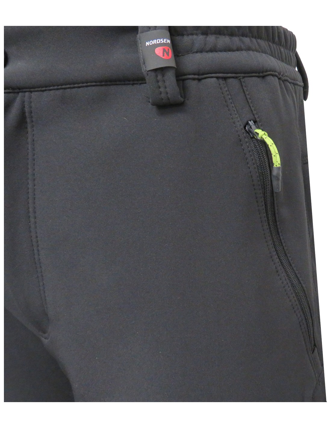 Pantalone in tessuto soft shell a due strati. La particolare struttura del tessuto rende il capo traspirante perché' facilita l'espulsione dell’umidità in eccesso e nello stesso tempo anche caldo perché' trattiene il calore necessario. Il capo presenta cintura con elastico e chiusura con doppio bottone, fondo gamba apribile con zip e velcro ed elastico nella parte dietro per aderire meglio allo scarpone. E' quindi un capo molto confortevole, ideale per passeggiate all'aria aperta e al freddo dell'inverno.