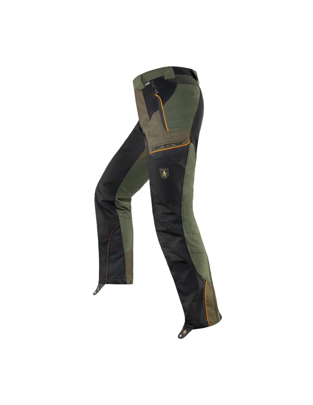 PANTHER PRO 4.0 è un pantalone con tecnologia THORN SHIELD®: sviluppata da TRABALDO®, è una speciale struttura tessile in grado di migliorare sensibilmente la resistenza alla perforazione, riducendo fastidiosi danni all’epidermide causati dall'utilizzo in ambienti spinosi. Per conferire vestibilità sinuose e confort di calzata, nella quarta generazione abbiamo utilizzato la nuova culatta in KETRTEX bi-stretch, che in unione alla confort-zone lombare non vi farà sembrare possibile di stare indossando un pantalone così rinforzato.