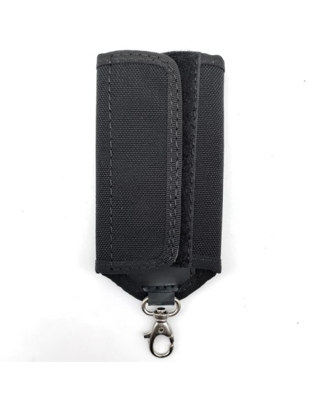 Portachiavi in cordura nera professionale progettato per garantire un trasporto sicuro e silenzioso delle chiavi, ideale per operatori delle forze dell'ordine, sicurezza privata e softair.