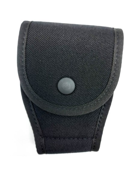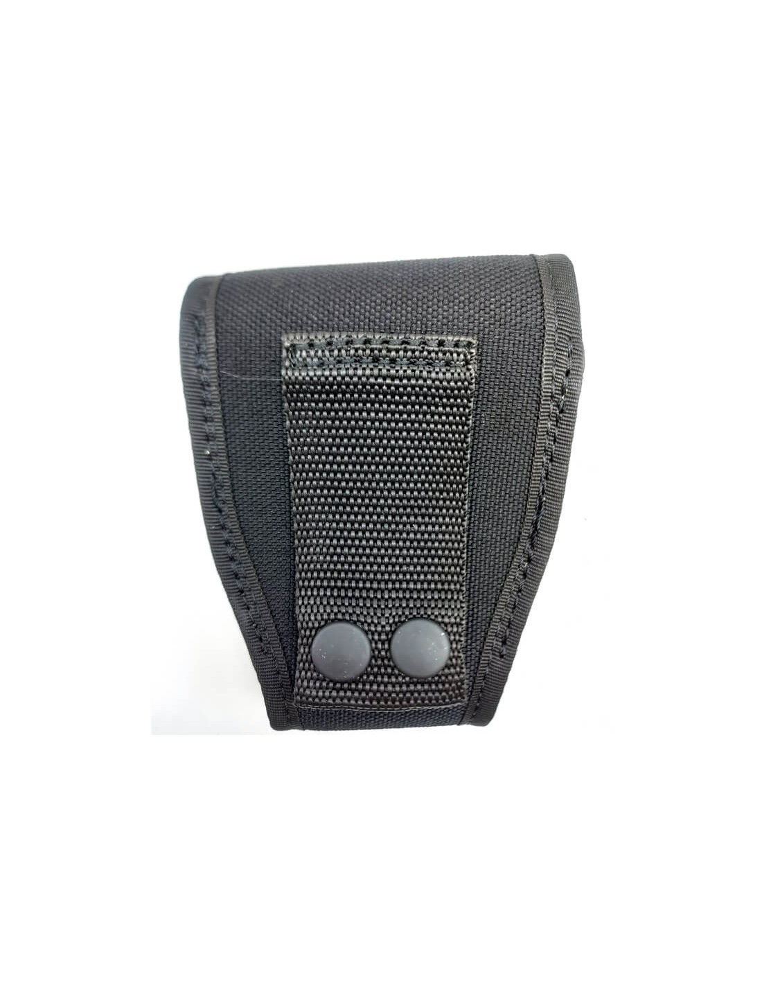 Porta manette in cordura nera professionale progettato per garantire un trasporto sicuro e silenzioso delle manette, ideale per operatori delle forze dell'ordine.