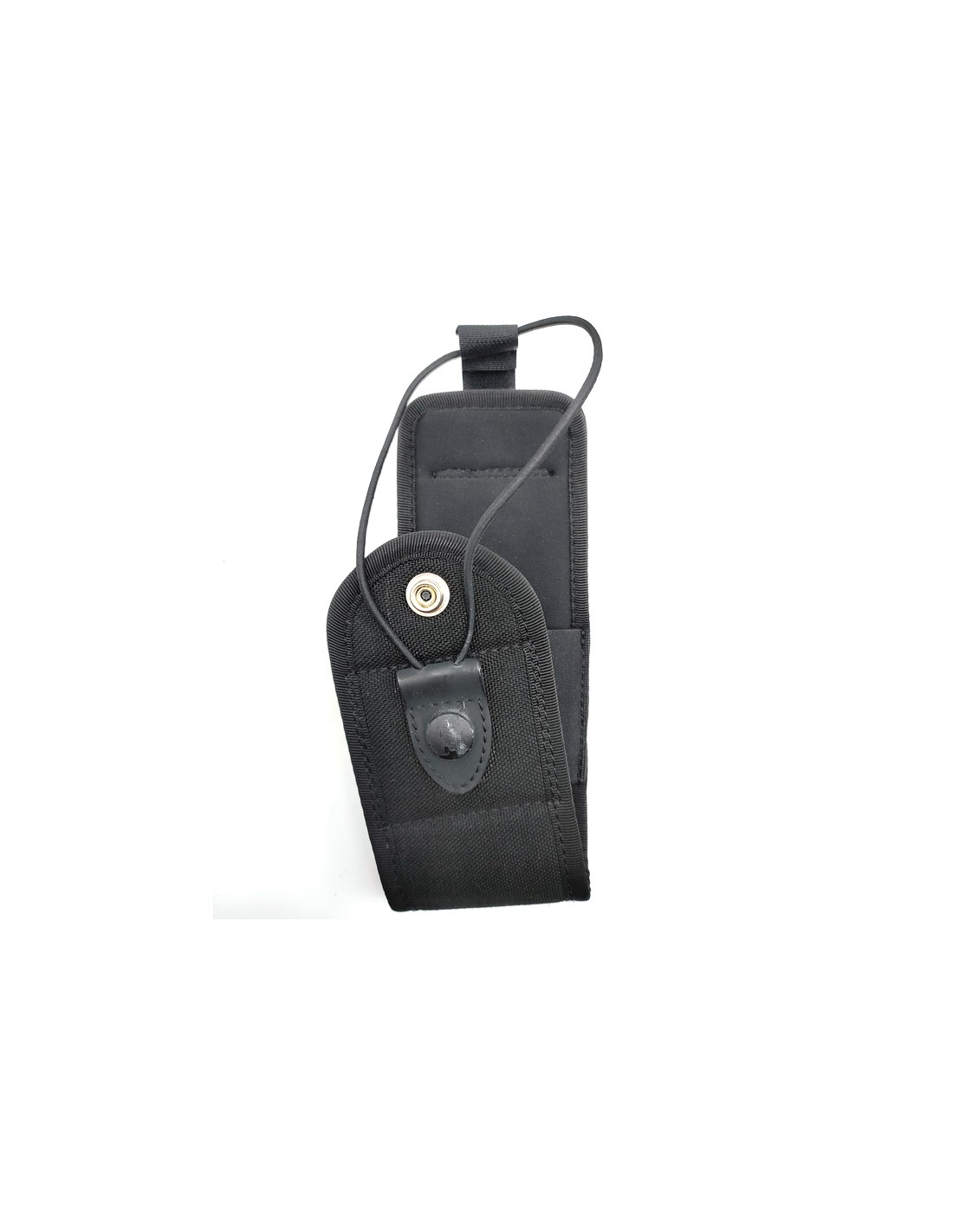 Porta radio in cordura nera professionale progettato per garantire un trasporto sicuro della radio, ideale per operatori delle forze dell'ordine, sicurezza privata e softair.
