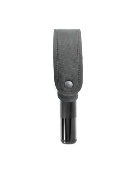 Porta torcia aperto in cordura nera professionale progettato per garantire un trasporto sicuro della torcia C/Cell, ideale per operatori delle forze dell'ordine, sicurezza privata e softair.