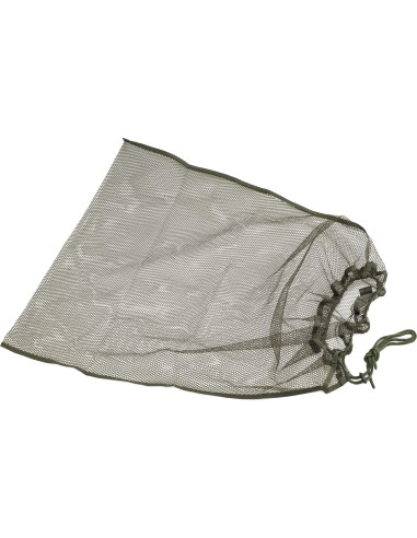 Sacca a rete porta biancheria con laccio di chiusura ed etichetta nominale neutra.