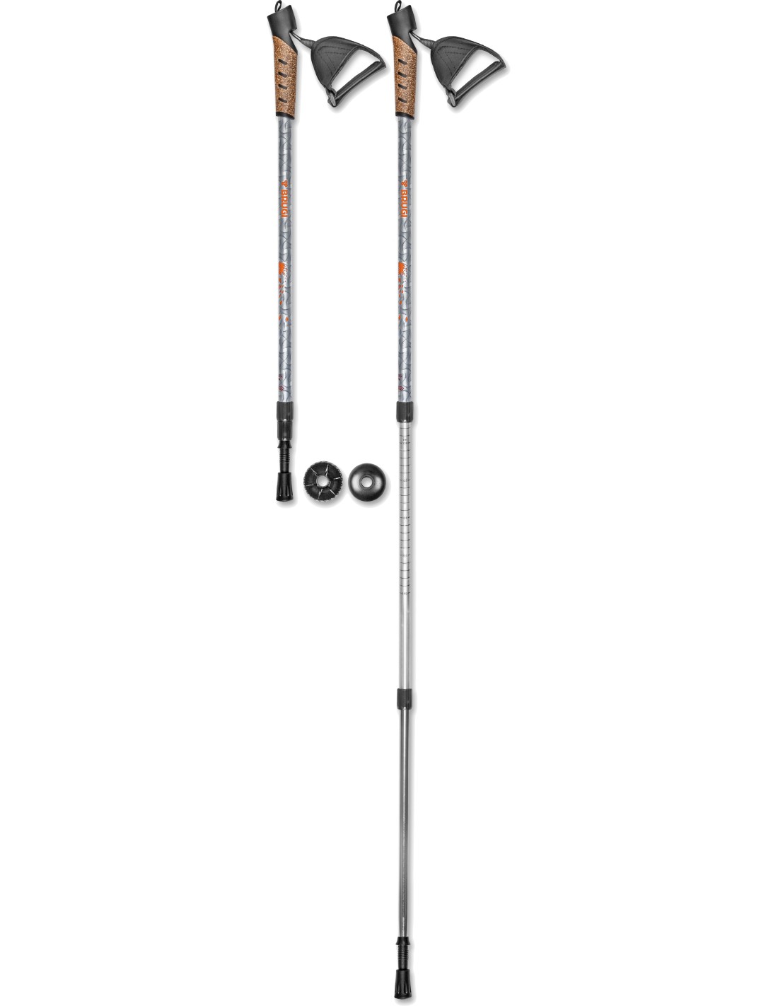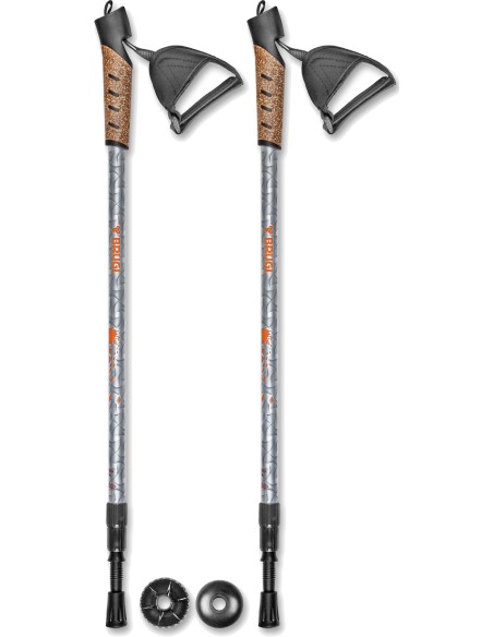 I Bastoncini Brugi Nordic Walking da trekking sono dotati di punte in gomma per l'utilizzo su superfici dure, come strade e sentieri, ma possono anche essere utilizzati con i classici piatti per l'utilizzo su terreni morbidi. Inoltre, sono forniti con cuscinetti antishock che riducono l'impatto delle vibrazioni sulle articolazioni durante l'utilizzo.