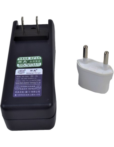 Carica batterie per batterie a litio 18650 + adattatore USA-EU