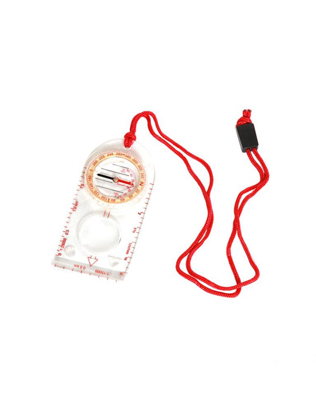 Bussola per orienteering con scala in pollici e scala di rappresentazione 1:25000, lente di ingrandimento e fori sagomati per tracciamento simboli sulla mappa. Quadrante con ghiera e riferimenti fluorescenti. Dimensioni 11,5x5,5 cm, cordino in nylon per il trasporto. Peso lordo: 53 grammi.