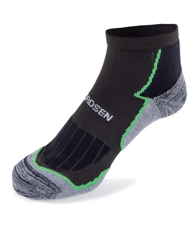 Paio calze corte tecniche realizzate in tessuto con struttura pluristrato a densità variabile altamente traspirante, leggere e confortevoli per dare massimo comfort. Paio di calze suddiviso per differenti zone anatomiche del piede subordinate al movimento stesso in camminata.
