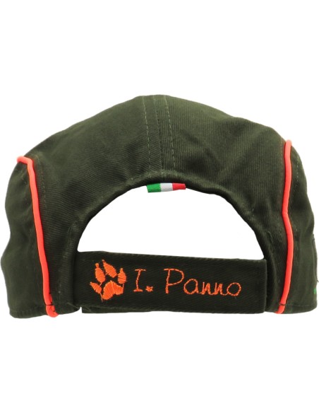 Coppola verde con inserto arancione ricamo Cinghiale con mirino.