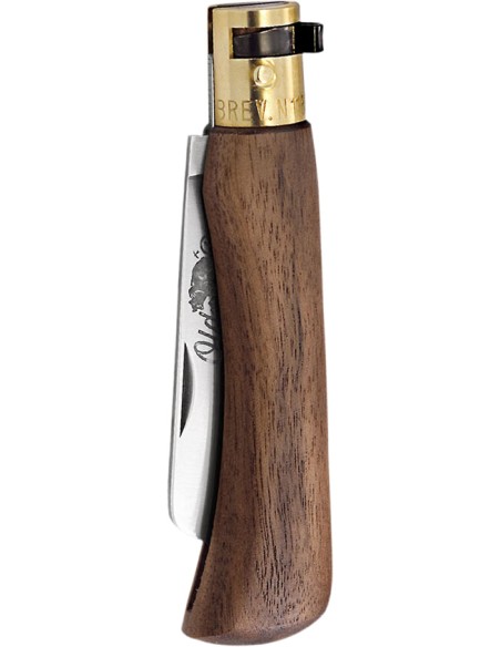 Le manicature sono realizzate in legno di noce americano trattato ad olio, mentre la lama realizzata in acciaio inox Aisi 420 è affilata e ripresa manualmente sulla pietra da sapienti mani artigiane.