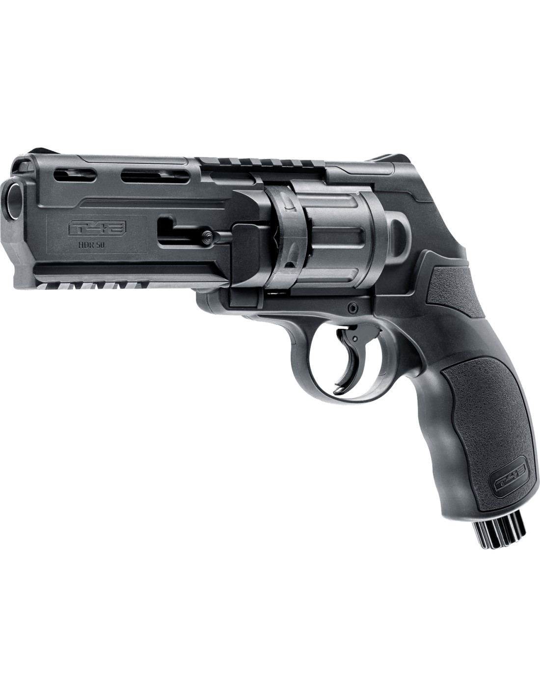 - L'HDR 50 è un revolver a Co2 in calibro .50". Il caricatore a rotazione facile da caricare contiene sei proiettili calibro .50 che vengono sparati sotto i 7,5 joule. L'alimentazione è fornita da una cartuccia di CO2 posizionata nell'impugnatura. Basta un leggero colpo in fondo per perforarlo. Così Home Defense Revolver 50 (HDR) è pronto per l'uso in qualsiasi momento. Le superfici del telaio testurizzate offrono una presa sicura anche in situazioni di stress e la sicura del grilletto previene gli spari accidentali.