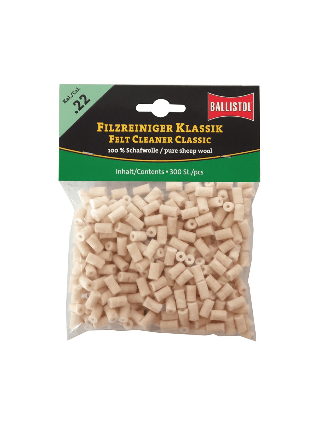 I Feltrini Ballistol Classic sono progettati per la pulizia efficace delle canne di armi ad aria compressa e da fuoco in calibro 5,5 mm/.22. Realizzati in 100% lana di pecora, offrono un'elevata capacità assorbente, catturando e rimuovendo residui di piombo, rame e polvere.