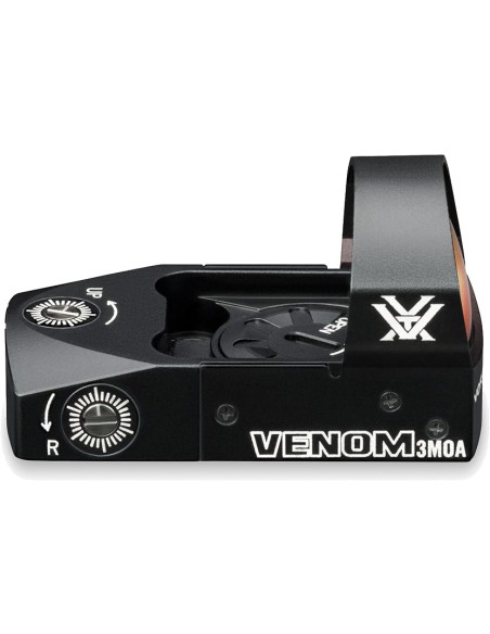 Il VENOM red dot con attacco basso, una soluzione ideale in abbinamento ad uso di pistole. Il Venom dà ai tiratori semplicità d'azione e velocità grazie al punto rosso Dot da 3 MOA. Lenti multi trattate per offire un ultra chiaro ed ampio campo visivo. I pulsanti sul lato sinistro offrono una rapida regolazione, di facile accesso. Il punto rosso ha in dotazione base di montaggio picatinny e batteria CR1632.