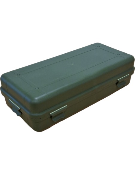 Valigetta in plastica rigida verde. Dimensioni: lunghezza cm 12.3, larghezza cm 26.3 e altezza cm 7. Prodotto in Italia.